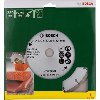 Die Bosch Diamanttrennscheibe Promoline für Baumaterial 230 mm ist für praktisch jede Aufgabe bestens gerüstet. Die Diamanttrennscheibe ist für präzise, saubere Schnitte in unterschiedlichen Baumaterialien geeignet.
