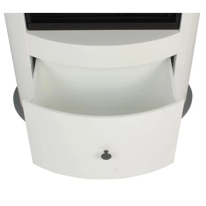 Die hochwertige Verarbeitung des EL Fuego Wien II in Weiß lässt auch bei höchsten Ansprüchen keinerlei Wünsche offen. Dieser Elektrokamin im modernen Design ist eine hervorragende Ergänzung für Ihr Wohnambiente. Die robusten Oberflächen sorgen für eine hohe Langlebigkeit und auch für Pflegeleichtigkeit. Als praktisches Detail bietet dieser Elektrokamin über eine große Schublade, die zu Aufbewahrungszwecken benutzt werden kann.Durch neueste Technik wird die perfekte Illusion eines echten Kaminfeuers mit glühenden Holzscheiten erzeugt. An kalten Tagen verwöhnt Sie die zusätzlich eingebaute Heizung mit angenehmer Wärme. Die Bedienung ist auch bequem per Fernbedienung (im Lieferumfang enthalten) möglich.
