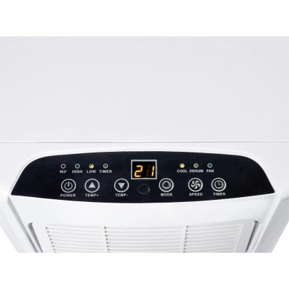 Ausgelegt ist das Klimagerät für ein Raumvolumen von bis zu 50 m³, bzw. einer Raumfläche von etwa 12 m² bis 18 m². Mit einer integrierten 24 h-Zeitschaltuhr ausgestattet, kann der Betrieb auch automatisch gestartet und abgeschaltet werden. Das kompakte Klimagerät kann mobil im Raum aufgestellt und wieder neu positioniert werden. Durch die schlichte weiße Farbe und das minimalistische Design fügt es sich zudem harmonisch ins Ambiente ein. Die für die Fernbedienung benötigte CR2025 Batterie ist separat erhältlich.