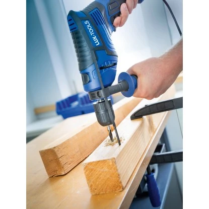 Die kompakte Schlagbohrmaschine E-BMS-21 von LUX-TOOLS mit leistungsstarken 750 W hilft Ihnen bei vielfältigen Bohrarbeiten in Holz, Metall und Beton. Bei Bedarf können Sie die Schlagfunktion für besonders druckvolles Schlagbohren hinzuschalten. Mit der hohen Schlagzahl von 48.000/min erzielt der Schlagbohrer ein sauberes und effizientes Ergebnis, beispielsweise beim Durchdringen von hartem Mauerwerk.