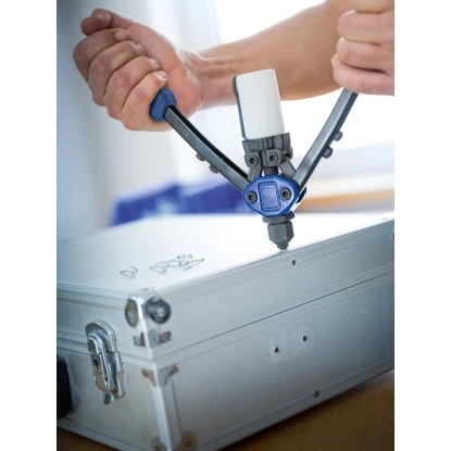 Die LUX-TOOLS Blindnietenzange Comfort eignet sich durch ihre besondere Geometrie optimal zum Setzen von Blindnieten mit einem Ø von 2,4 mm, 3 mm, 4 mm und 5 mm.
