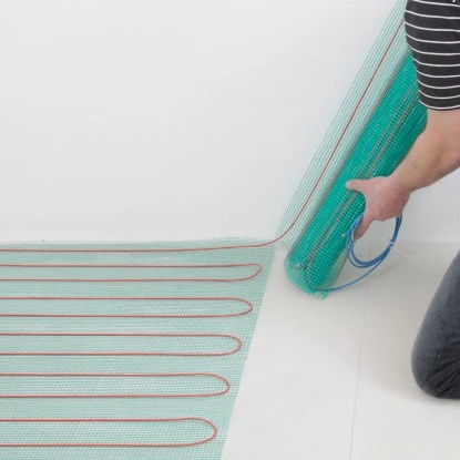 Das anschlussfertige Heizelement wird mit einer Anschlussleistung von 160 Watt/m² geliefert. Die Fertigung erfolgt in Anlehnung an die VDE-Normen, sowie nach den Schutzanforderungen der EG-Niederspannungsrichtlinie 2014/35/EU. Diese Elektrische Fußbodentemperierung ist eine superflache elektrische Dünnbettheizung zur Bodentemperierung, die sich durch geringe Einbauhöhe, einfache Verlegung und schnelle Aufheizung auszeichnet – ideal zum nachträglichen Einbau im „Do it yourself – Bereich“. Durch eine direkte maschinelle Verklebung der Heizleitungen auf dem Gewebe werden mögliche Lufteinschlüsse bei der Einbettung der Heizelemente minimiert. Premium Qualität hergestellt in Deutschland. Dieses Produkt trägt das VDE Siegel.