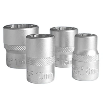 Auch Muttern und Schrauben, bei denen die Kanten zerstört sind, können gelöst werden. Mit dem Schrauben Ex II lösen Sie rund gedrehte Sechskant-Schrauben und Muttern in 8 mm, 10 mm, 13 mm und 17 mm Größe. Die Handhabung ist einfach: Der Schrauben EX II wird ganz einfach auf den beschädigten Sechskant gesteckt, dann greift die spezielle Zahnung fest und sicher an der Flanke zu und löst Schrauben und Muttern ohne Probleme.
