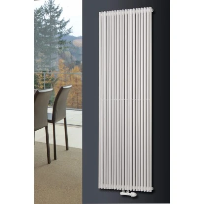 Formschöne vertikale Profile in Trapezform verleihen diesem Designheizkörper eine strahlende Eleganz.